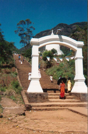 Ein gewaltiger Fußabdruck auf der Spitze des Berges gilt je nach Religion als von Buddha, Adam (Christen und Muslime) oder Skanda/Kataragama (Hindus) stammend.